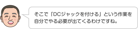 • そこで「DCジャックを付ける」という作業を自分でやる必要が出てくるわけですね。