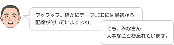 • フッフッフ。確かにテープLEDには最初から配線が付いていますよね。 でも、みなさん大事なことを忘れています。